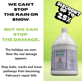 Bond Boss™ outperforms traditional sealants with its easy spray-on application, deep penetration, waterproofing and quick-drying formula.